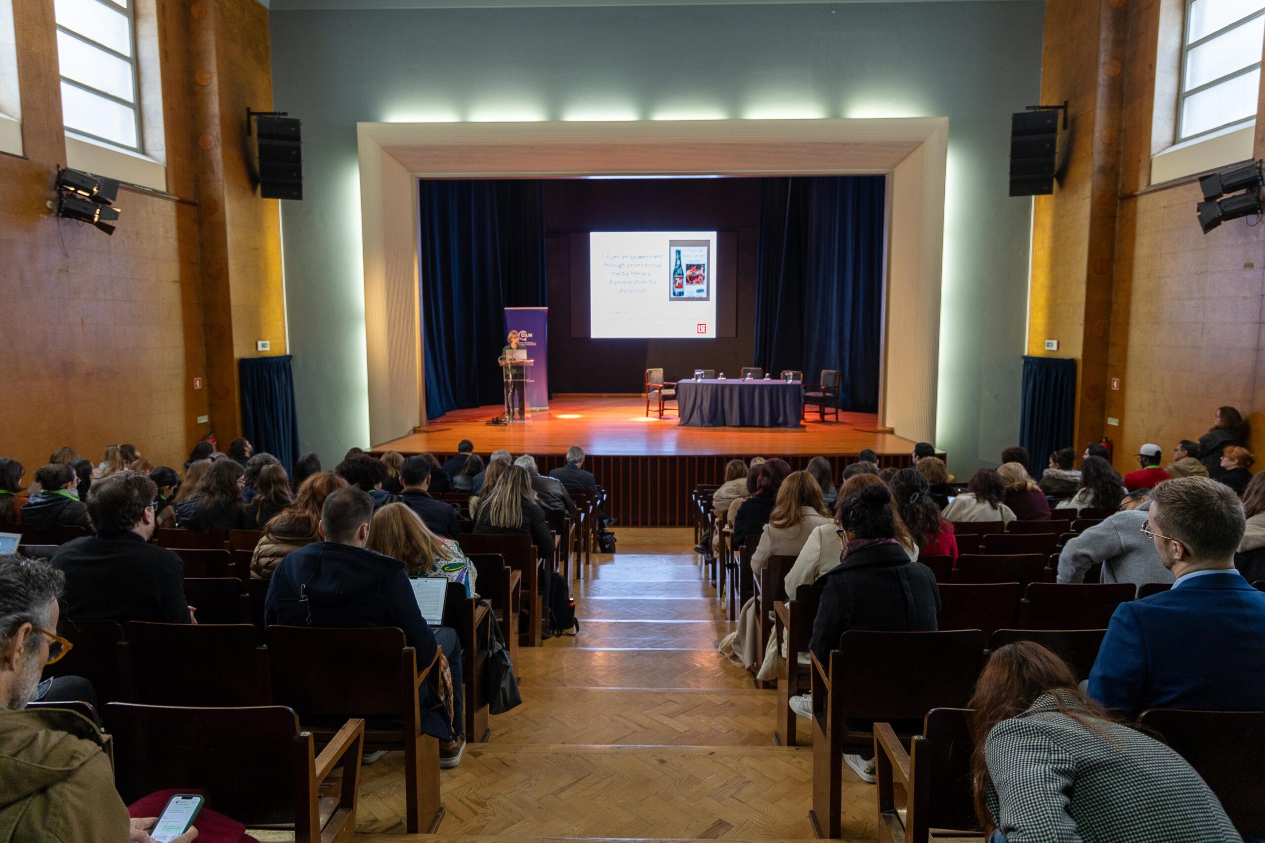 No mesmo dia, teve também lugar a comunicação “Literacia mediática em contextos de desertos de notícias: A relevância dos media comunitários no âmbito do Projeto Narrativas”, de Maria Maia, aluna no mestrado em Jornalismo da ESCS, e das investigadoras do LIACOM Fernanda Bonacho e Joana Pontes.