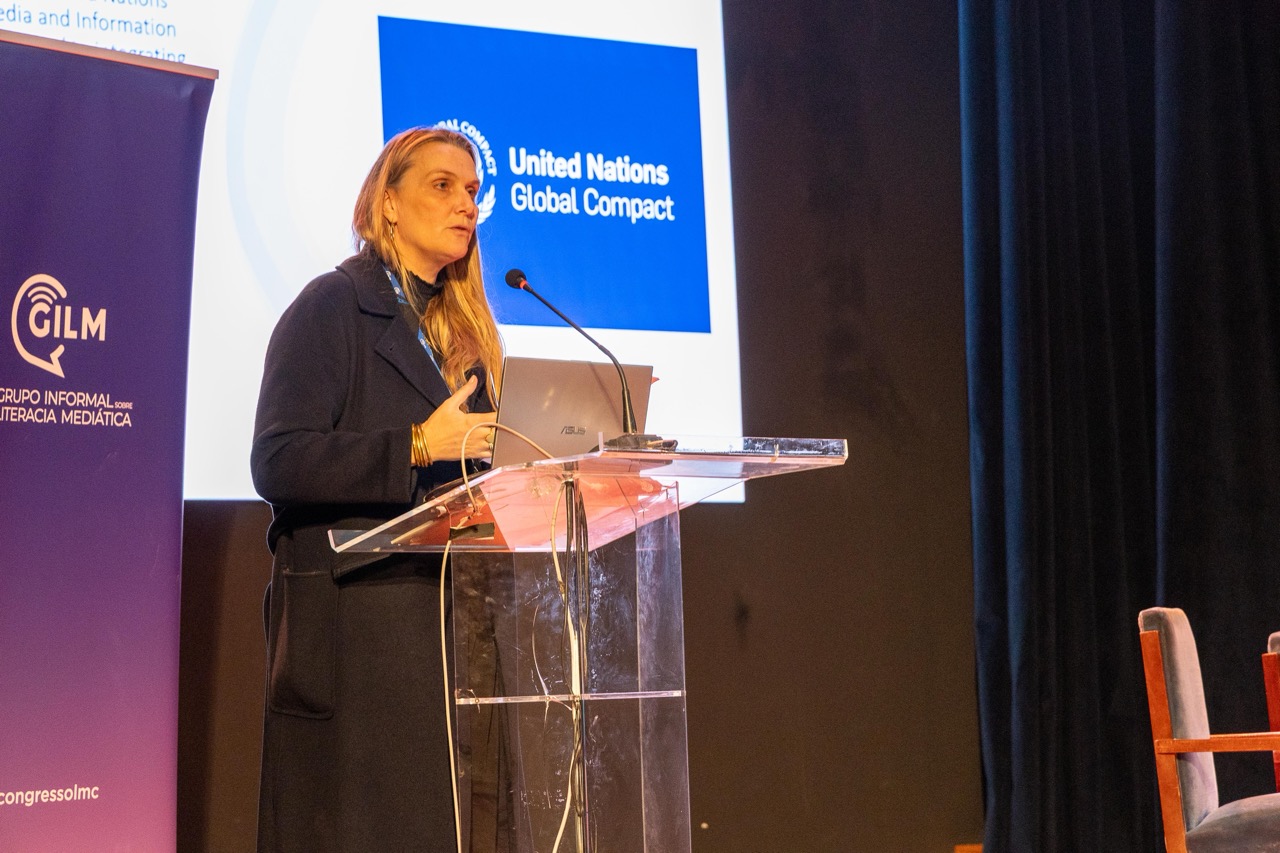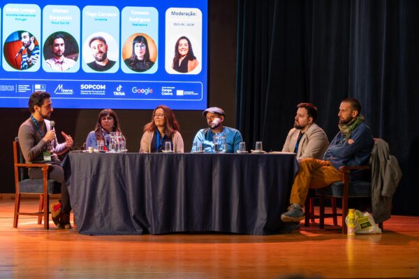 Quase a encerrar o evento, Fernanda Bonacho, titular da Cátedra UNESCO em Comunicação, Literacia e Cidadania, coordenadora do mestrado em Jornalismo da ESCS e representante da ESCS no GILM, moderou a sessão plenária III sob o lema “Media, Jornalismo e Direitos Humanos”. A conversa juntou Bojan Georgievski, do projeto Inclusive and Creative Media Education, Matia Losego, da Amnistia Internacional, Matteo Bergamini, do Shout Out UK, e o jornalista Tiago Carrasco, bem como a realizadora Vanessa Rodrigues.